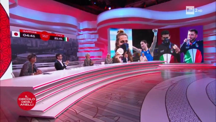 Su Rai Due va in onda Olimpiadi Tokyo 2020 - Il circolo degli anelli. A seguire Olimpiadi Tokyo 2020 - Record.